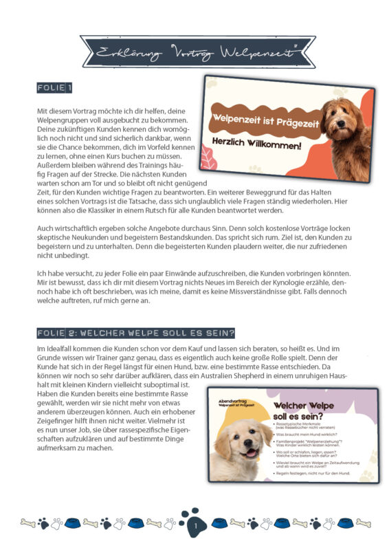 Perfekt als „Startgeschenk“ für die Kunden im Zusammenhang mit dem Verkauf des Welpenkurses. Toller Inhalt und der Kunde hört bei einem separaten Vortrag auch richtig zu…was in der Stunde selbst häufig schwierig ist