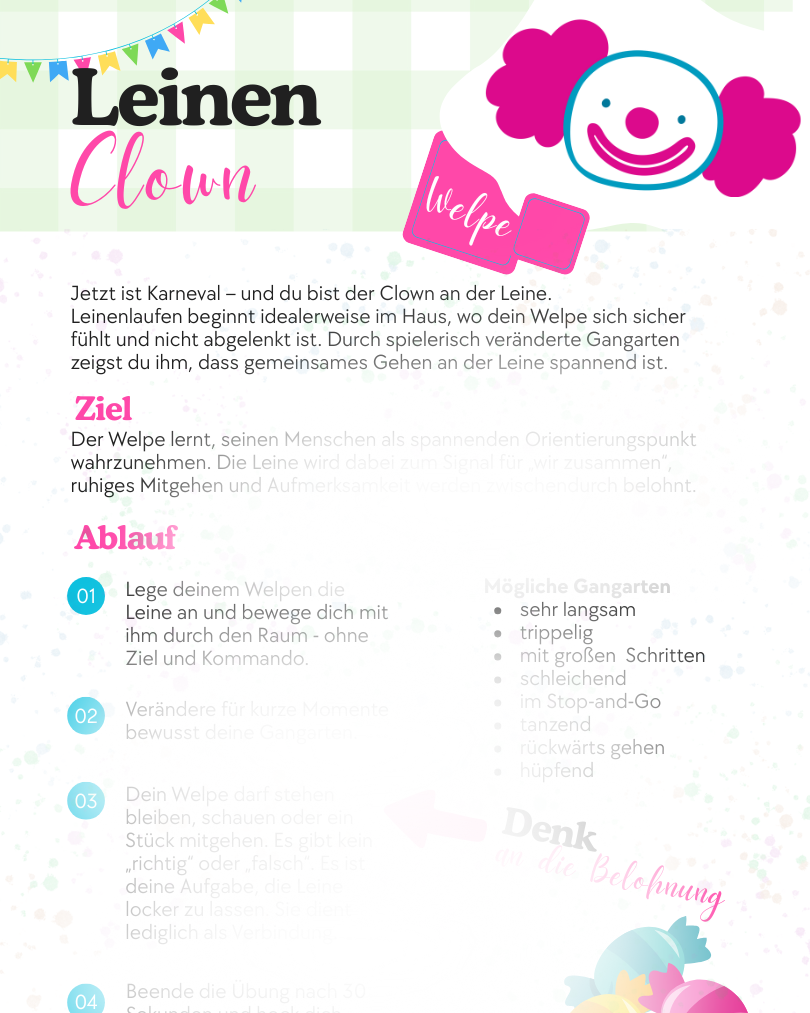 Kostenlose Welpenübung „Leinen Clown“