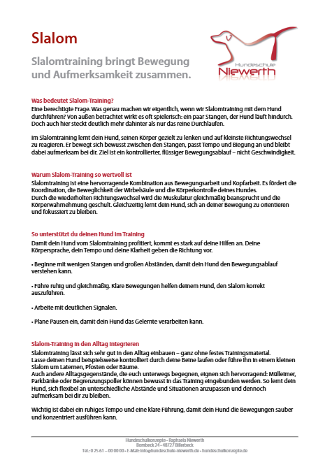 Mit diesem Handout kannst du deine Kunden für Slalomübungen sensibilisieren und warum sie gesunde Bewegungsabläufe beim Hund fördern.