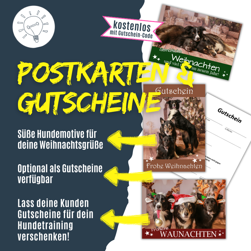 Du möchtest Weihnachtspostkarten mit einem schönen Hundemotiv an deine Kunden versenden?