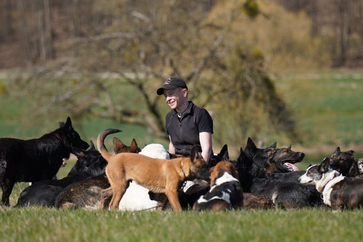 Katrin Scholz lebt in Grünberg (Hessen) und teilt ihr Zuhause mit über 30 unkastrierten Hunden – gemeinsam im Haus, ohne Zwinger. Mit diesem weltweit einzigartigen Rudelprojekt erfüllt sie sich ihren Kindheitstraum und ermöglicht faszinierende Einblicke in das natürliche Zusammenleben von Hunden.